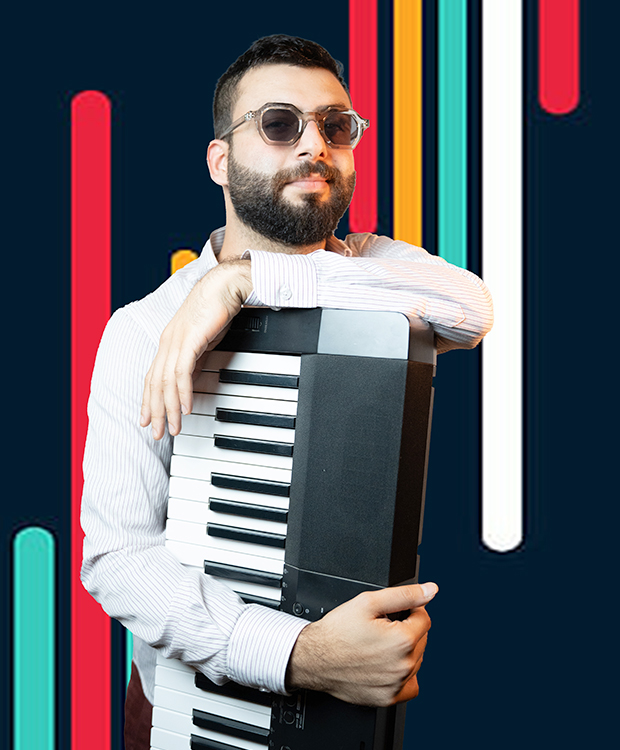 Alhadi Gebreel is a Syrian composer, pianist, and vocalist based in Dubai. Gebreels work blends Arabic music with jazz and improvisation, resulting in a distinctive cross-cultural sound that bridges traditions and contemporary expression. Through projects such as Arabian Nights and the Arabic Jazz Piano Project, Gebreel has developed platforms that highlight the depth of Arabic musical heritage while opening it to global influences.