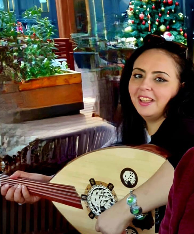 In addition to her work as a percussionist, Khattab is a passionate oud player, weaving Arabic melodic elements into her performances and expanding the expressive range of her artistry. She regularly accompanies vocalists on darbuka and riq in traditional takht ensembles and collaborates with contemporary groups, showcasing versatility across both classical and modern contexts.